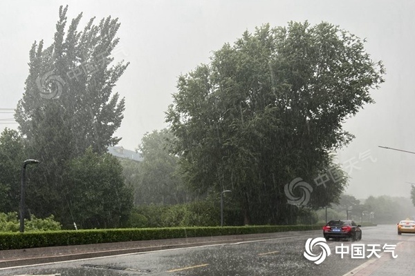 昨日午后,北京雷雨来袭,海淀区风大雨急。