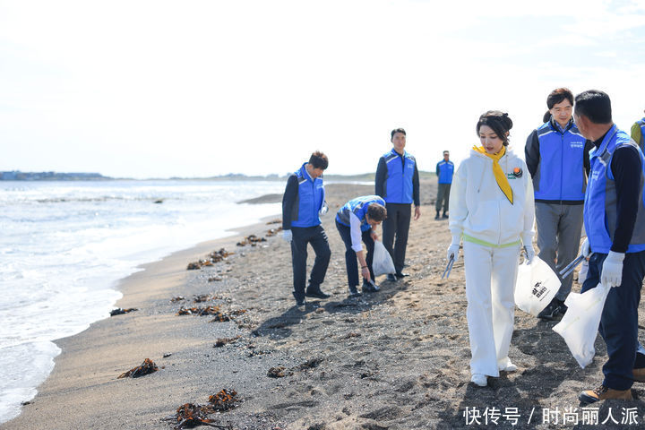 韩国第一夫东说念主独处白色卫衣亮相!在海边捡垃圾作念公益,嫩出新高度